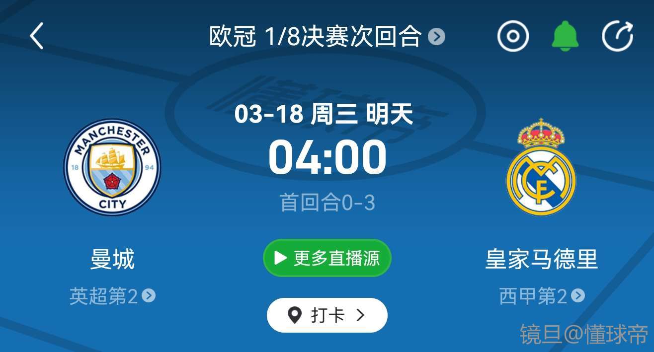 北京时间3月18日凌晨4点,欧冠1/8决赛次回合,曼城将回到阿提哈德球场迎战皇家马德里。
