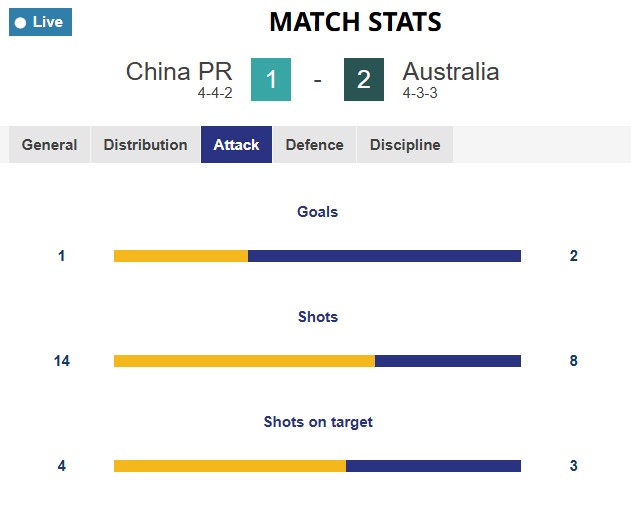 扫描下载懂球帝首页>动态> 中澳女足全场数据:中国女足控球率44.3%,射门14-8,射正4-3
