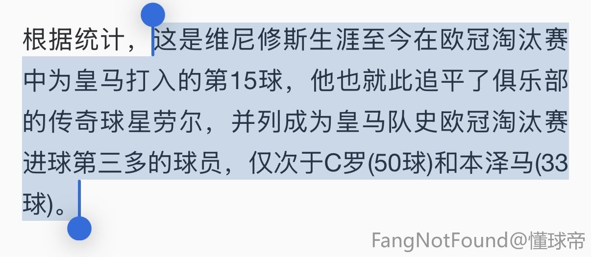 扫描下载懂球帝首页>动态> 16球,维尼修斯代表皇马欧冠淘汰赛进球超劳尔升至队史第三