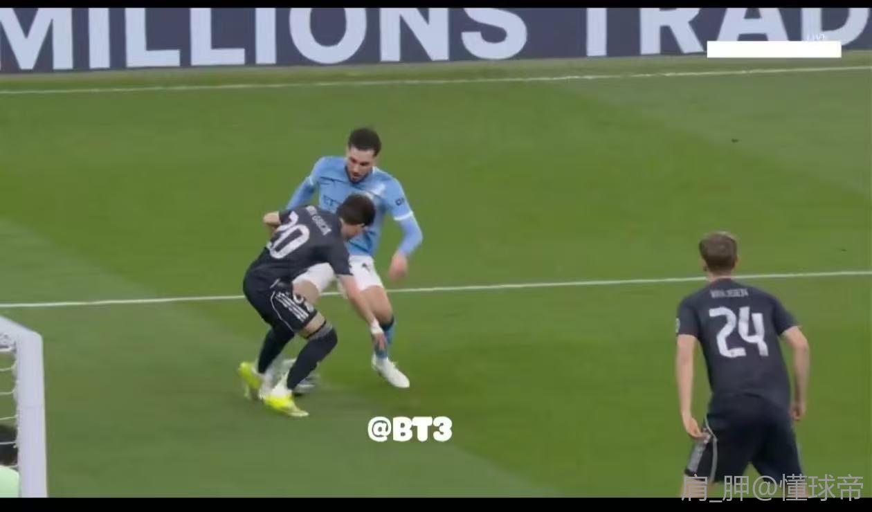 吕迪格的犯规视而不见,曼城这边的犯规当机立断。
