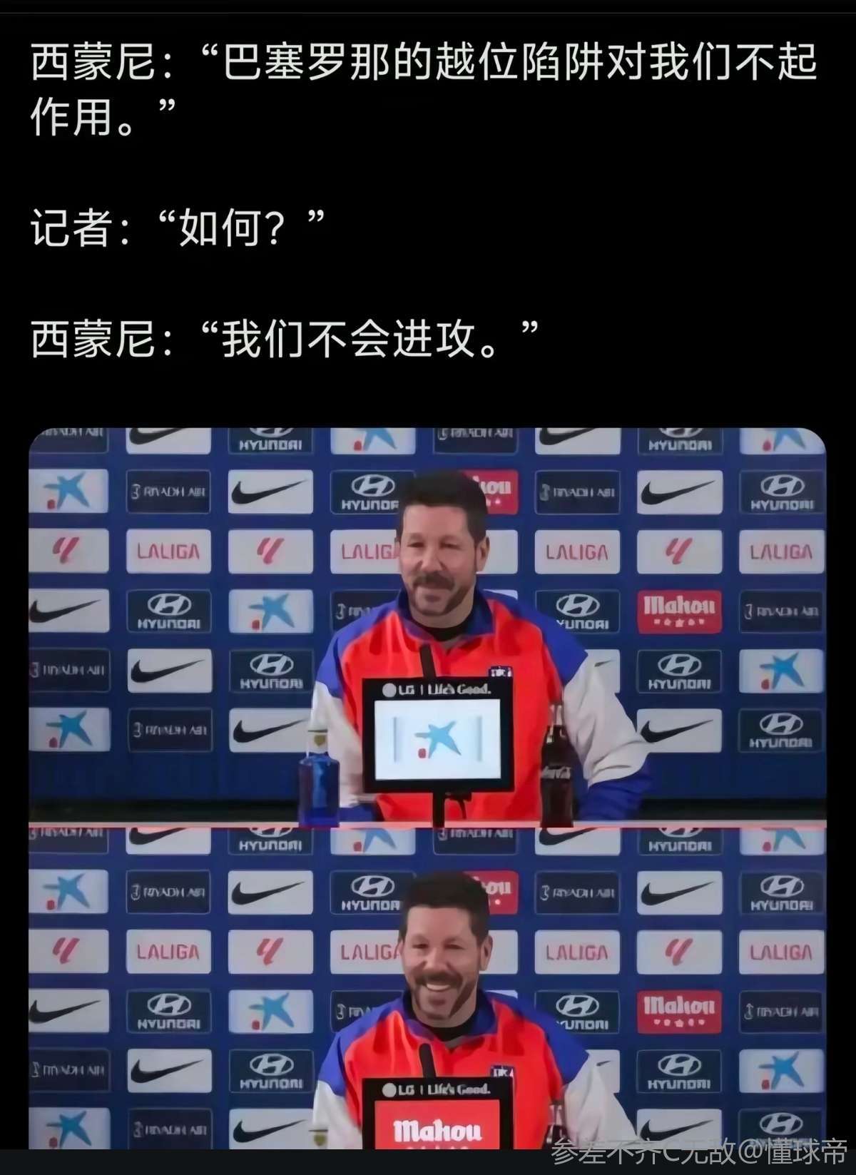 害,此时从不看马竞的冠军球迷又要说了,哦马竞啊,哦西蒙尼啊,再有灵性的球员去马竞/去西蒙尼手里都成工兵,马竞靠的都是铁血防守(听麻了都