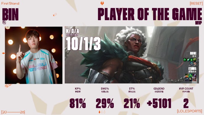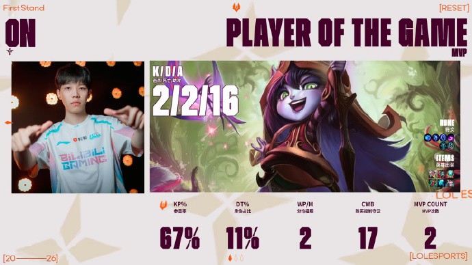 北京时间3月18日,2026全球先锋赛第三日,BLG 3-0击败G2,成为第一支晋级淘汰赛的战队。