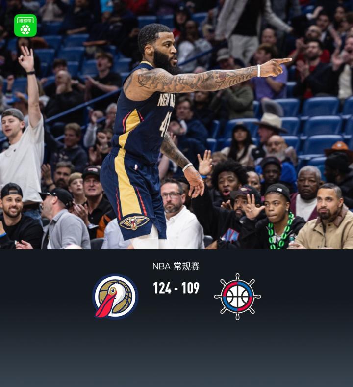 扫描下载懂球帝首页>动态> 鹈鹕124-109逆转送快船三连败,萨迪克-贝25分,墨菲23+7