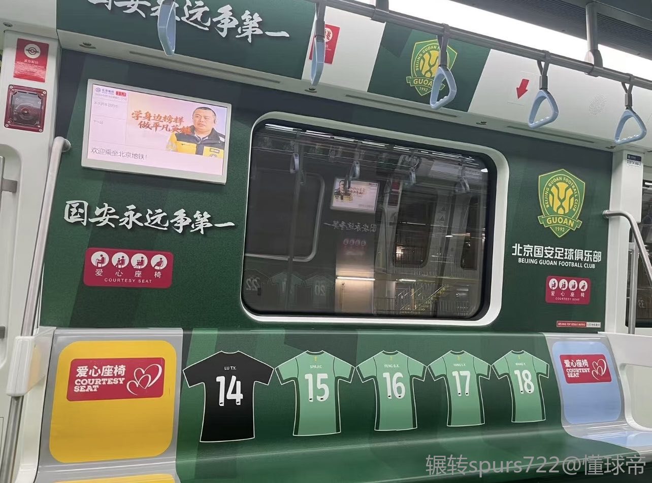 扫描下载懂球帝首页>动态> 北京国安&北京地铁联名球迷专列照片曝光,车厢国安元素满满