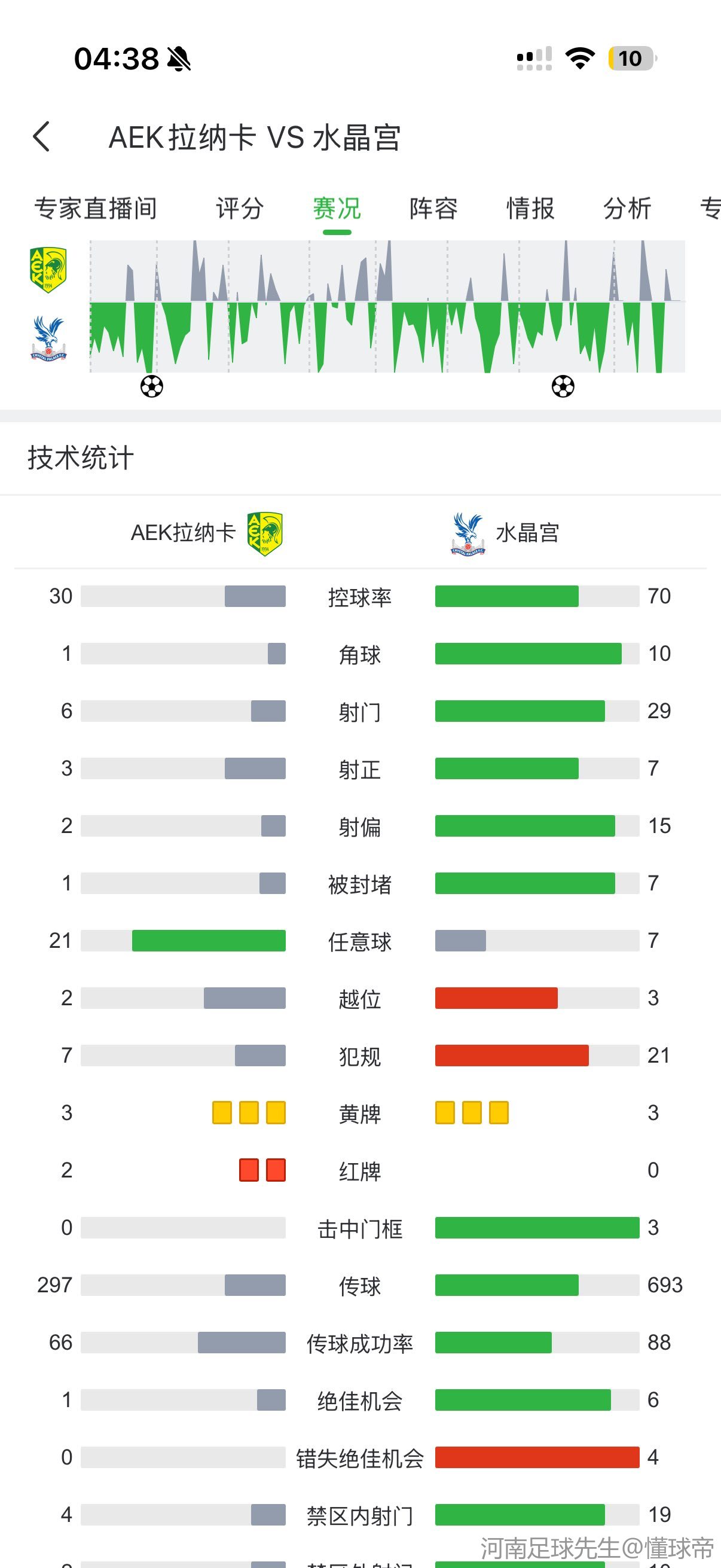 水晶宫真是抽象。首发身价3亿多,对手身价500w,随便一个队员腿毛都比对方值钱,长时间11打10。踢到加时赛险胜,甚至对方门将冲到本方半场的空门都能不进,真牛逼。
