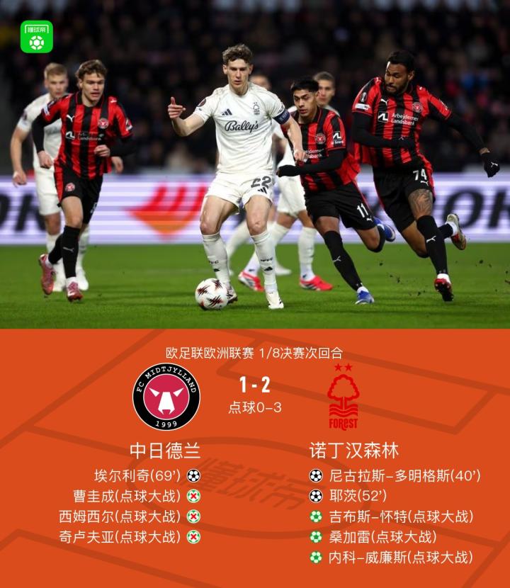 扫描下载懂球帝首页>动态> 诺丁汉森林点杀中日德兰晋级八强,耶茨破门