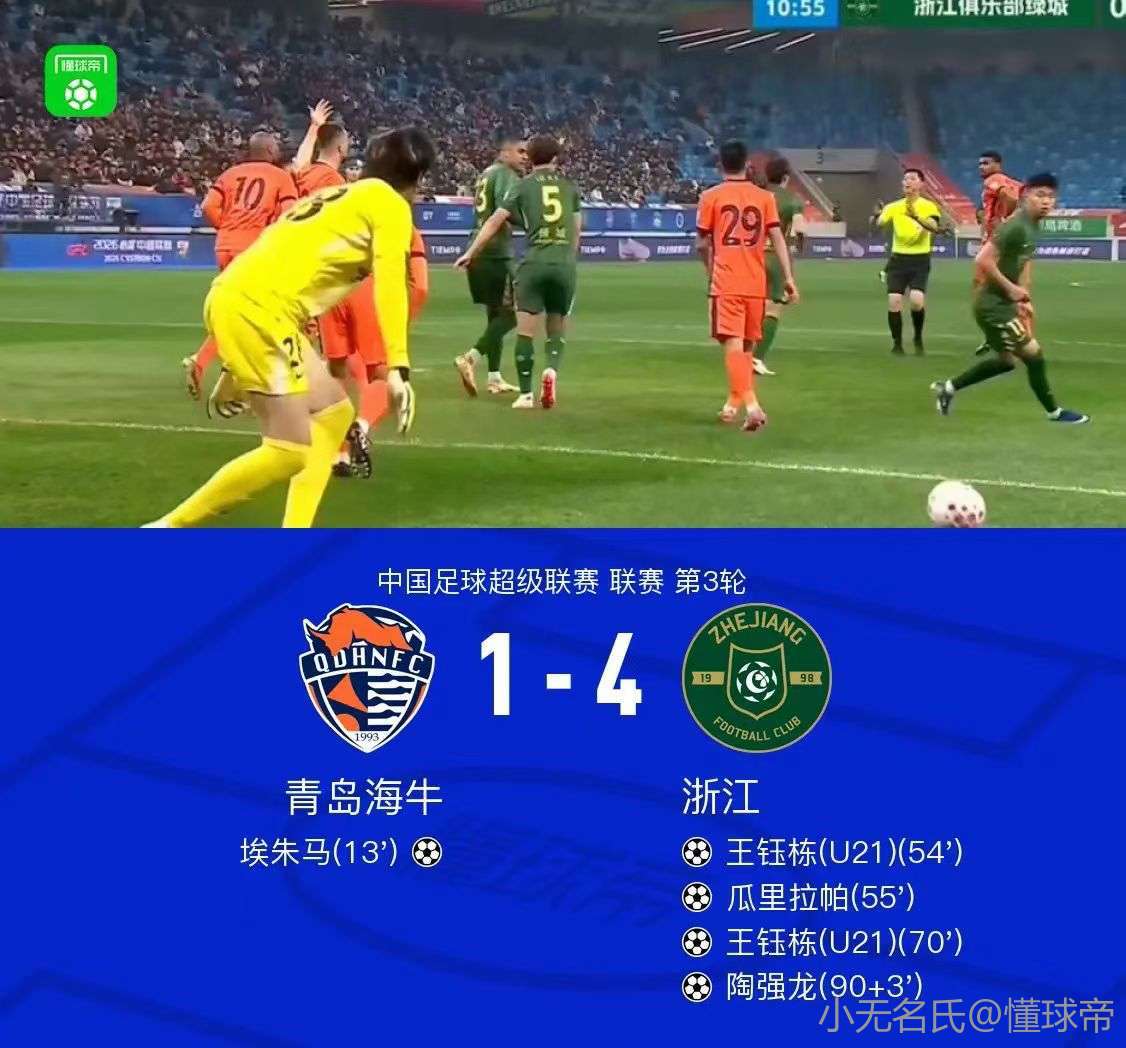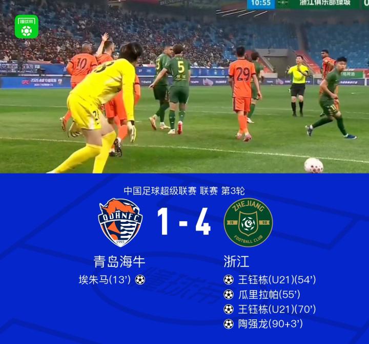 扫描下载懂球帝首页>动态> 浙江4-1逆转海牛,王钰栋梅开二度+伤退,浙江积分变为正数