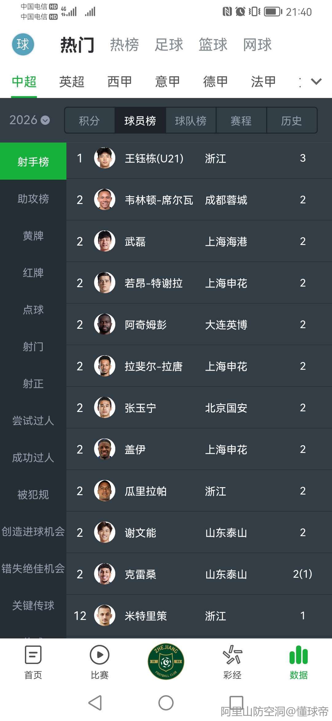 03-20 21:47胜海牛一役浙江预期进球达4.29,为有该项统计后中超单场最高