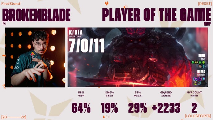 北京时间3月20日,先锋赛第五日,G2出人意料地3-0横扫BFX,晋级淘汰赛,半决赛中他们将对阵GEN。