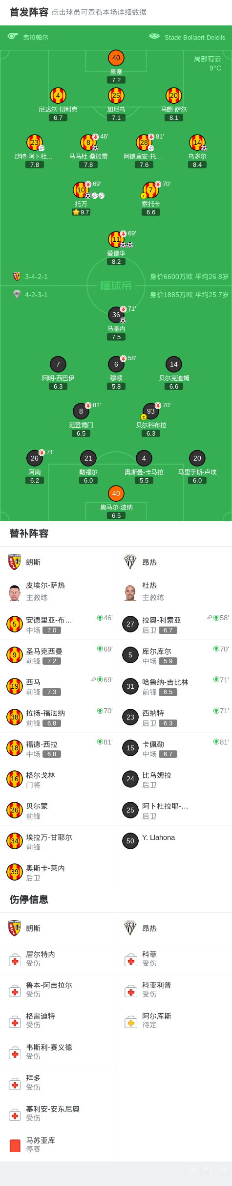 04-05 03:59里尔vs朗斯:默尼耶、费尔南德斯-帕尔多首发,托万、爱德华出战