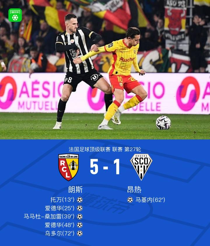 扫描下载懂球帝首页>动态> 朗斯5-1昂热,爱德华双响,托万传射,桑加雷、乌多尔破门