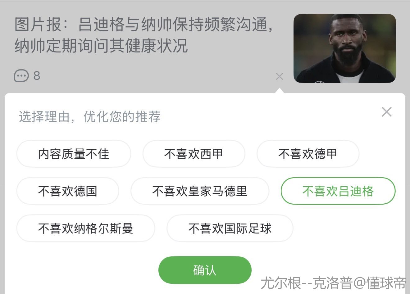 扫描下载懂球帝首页>动态> 图片报:吕迪格与纳帅保持频繁沟通,纳帅定期询问其健康状况