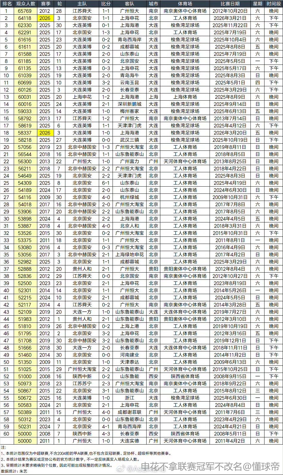 你拉到20会发现还有一堆大连,好像恢复主客场后也就申花主场的上海德比、北京主场的京沪德比能进前20