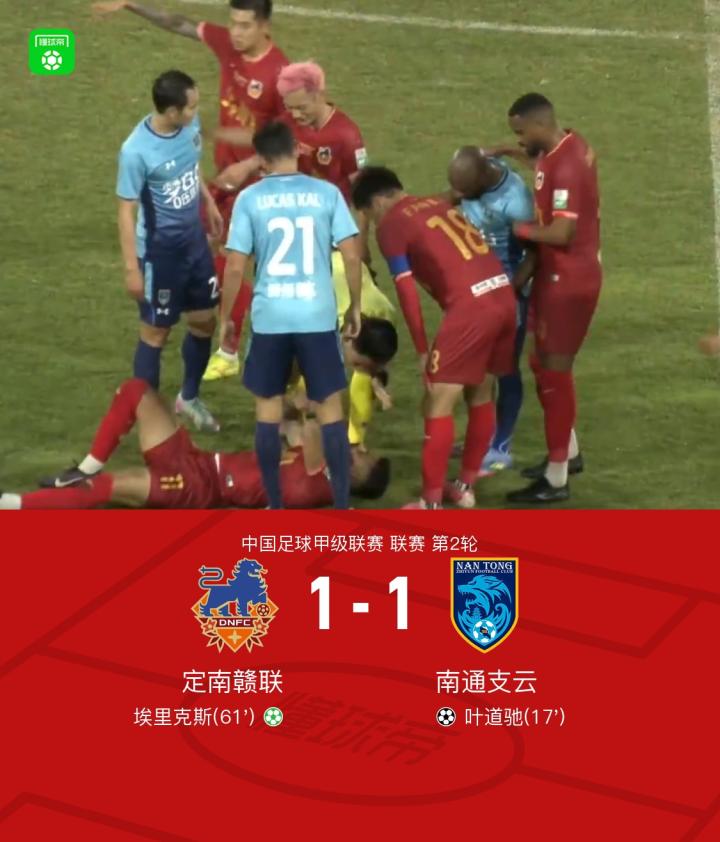 扫描下载懂球帝首页>动态> 定南赣联1-1南通支云,叶道驰笑纳大礼,埃里克斯造点+点射