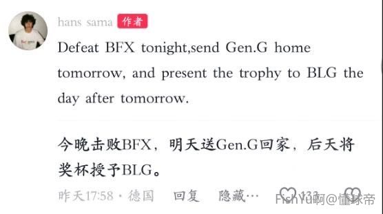 来点hans sama原话
