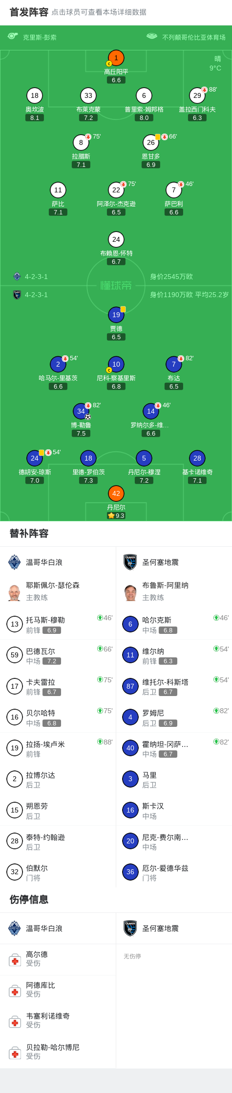北京时间3月22日美国职业大联盟 常规赛,温哥华白浪主场对阵圣何塞地震。圣何塞地震博-勒鲁破门。最终比分温哥华白浪 0-1 圣何塞地震。