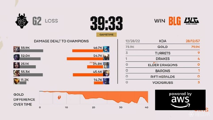 第40分钟,BLG下路推进团灭G2扳回一局!