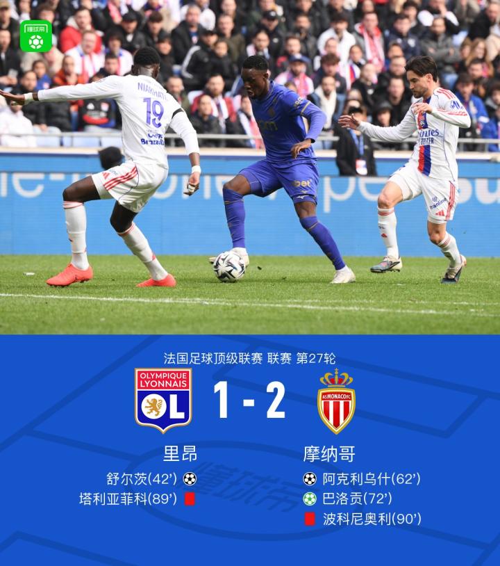 扫描下载懂球帝首页>动态> 里昂1-2摩纳哥,阿克利乌什破门+造点,巴洛贡点射
