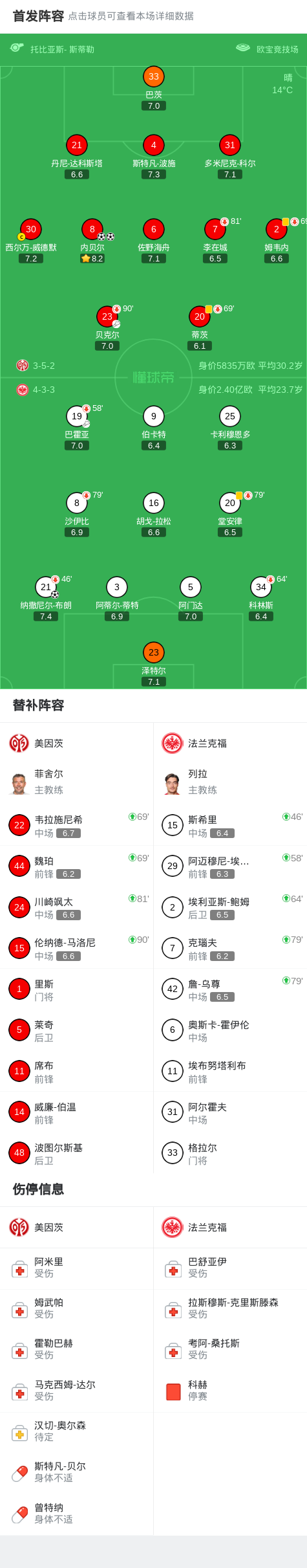 03-23 01:07半场战报:美因茨1-1法兰克福,内贝尔,纳撒尼尔-布朗破门
