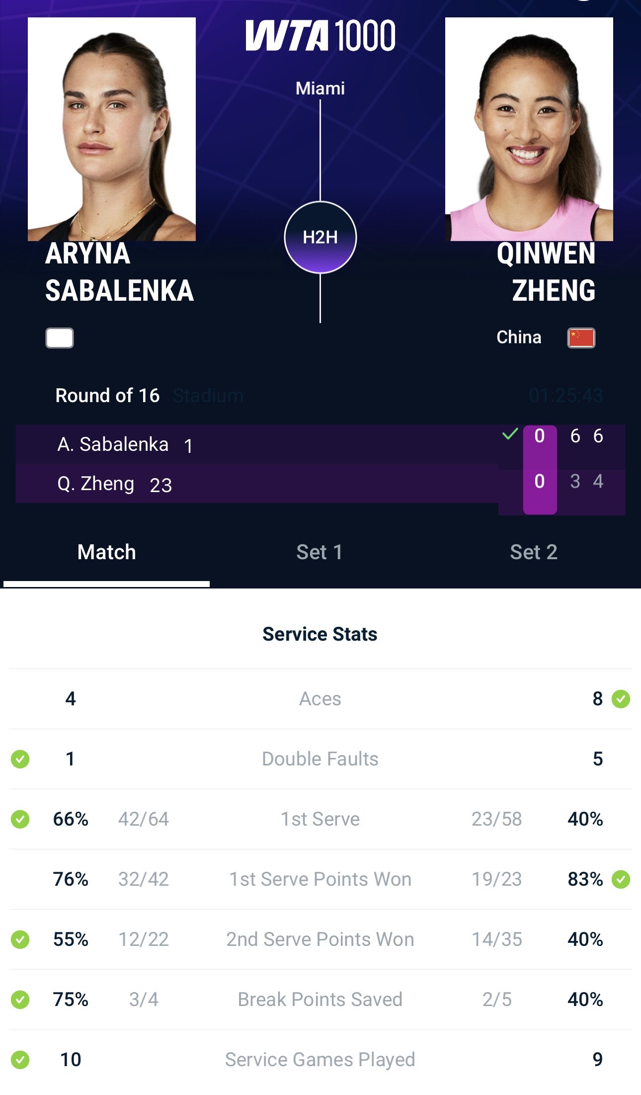 懂球帝首页>动态> 0-2不敌萨巴伦卡,郑钦文无缘WTA1000迈阿密站八强
