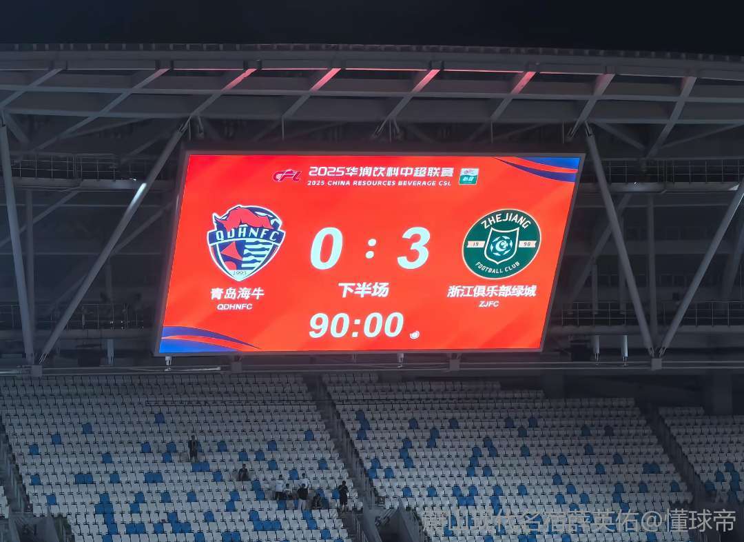 目前,青岛海牛队的积分仍是“-7分”,排在中超积分榜倒数第二位。