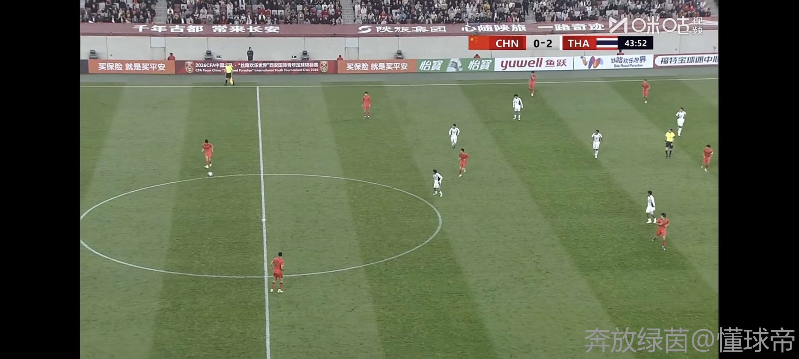 北京时间3月25日,中国U23国家队在西安国际足球中心与泰国U23国家队进行“丝路欢乐世界”国际青年足球锦标赛的较量。半场结束后,球场草皮有多处明显的翻起。