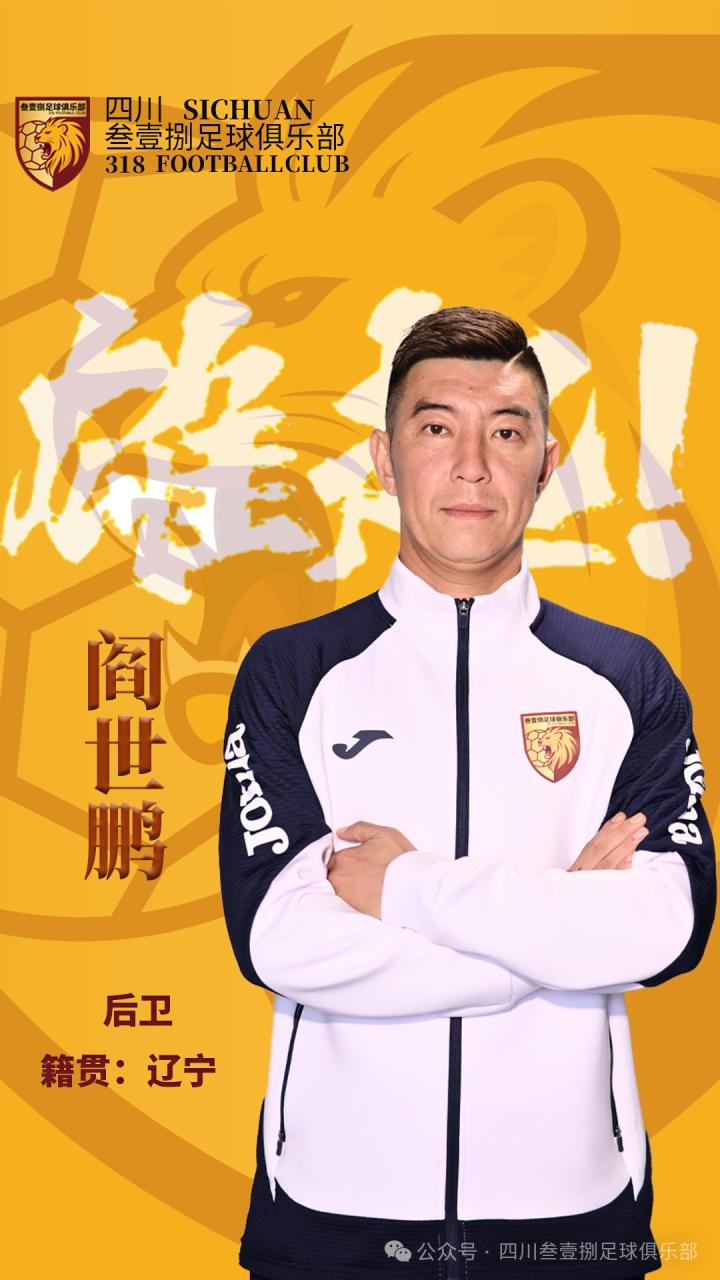 近日,中冠四川叁壹捌官方宣布,阎世鹏、李尚霖、宋琛、谭天澄等人加盟球队,其中李尚霖此前不久官宣加盟四川顶耀,此番再次转会。