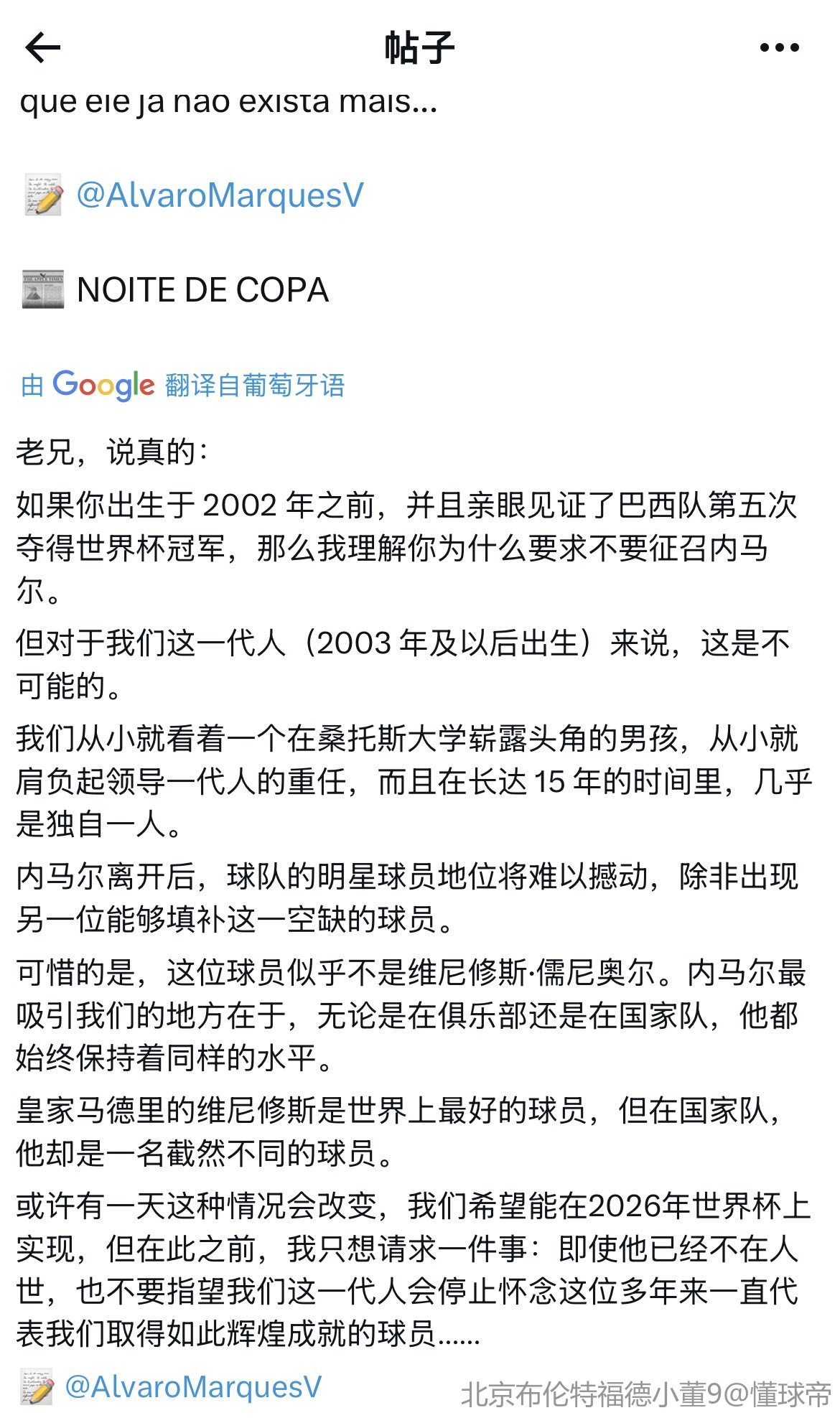 推上巴西人发的,这就是他们的心声啊,为啥一直骂巴西人。世界杯就是他们自己人的事,俱乐部球迷消停点吧
