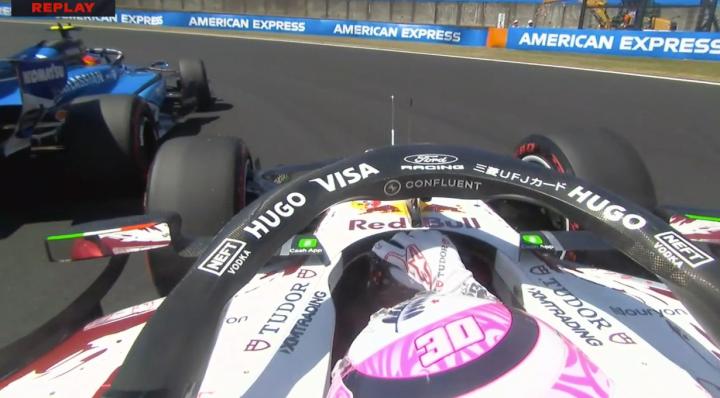 阿尔本在9号弯冲入了砂石区,后轮似乎与墙有碰撞。