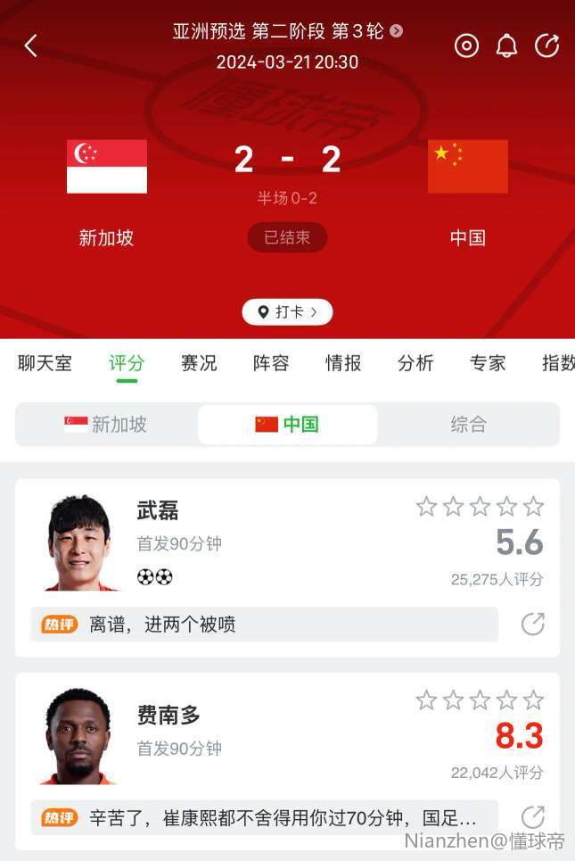 我很疑惑,懂球帝的国足评分也配拿出来单独发一条帖子吗