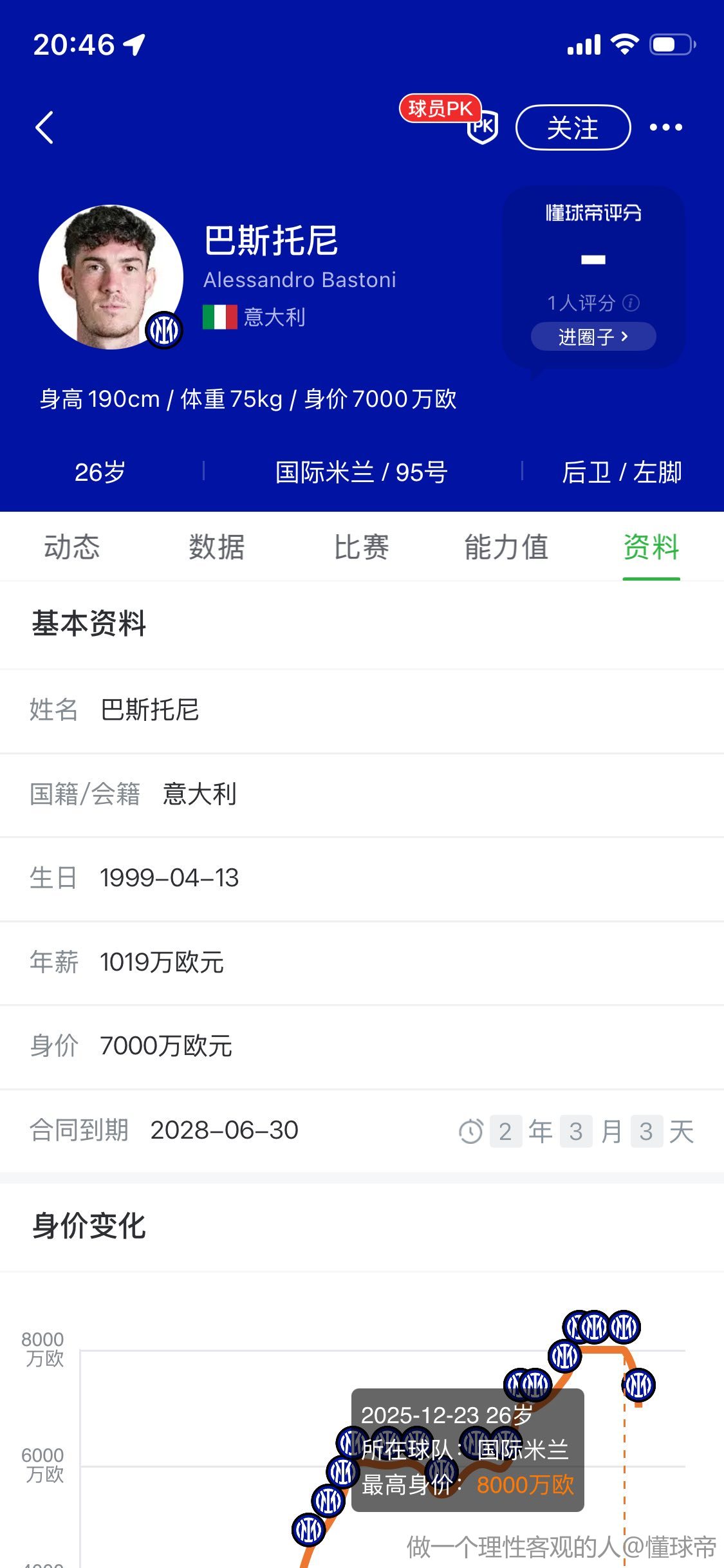 这算啥高薪。 出趟国和现在没区别,为啥不留下。意大利人又不像那些西语系的球员唯皇萨是瞻。 巴斯最多觉得国米不投入没前途
