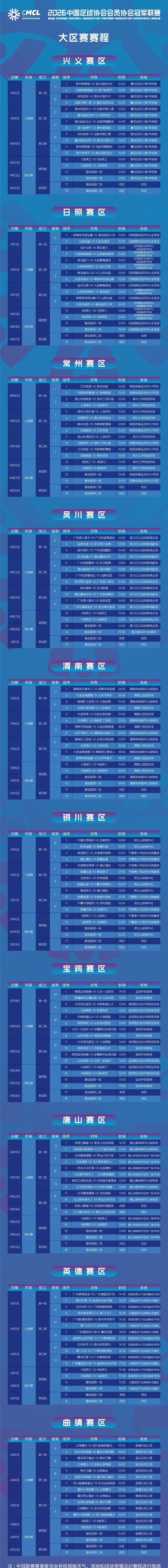 3月27日,中冠联赛官方公布了2026中冠联赛大区赛赛程。