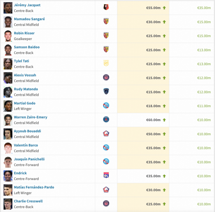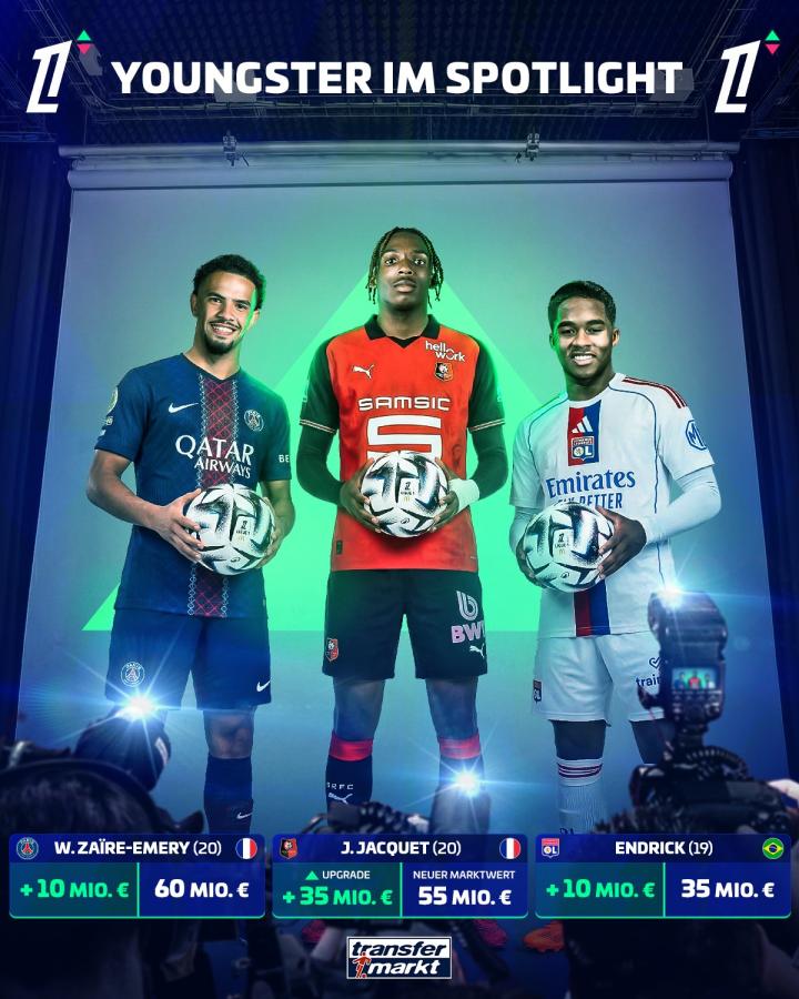 扫描下载懂球帝首页>动态> 法甲身价更新:雅凯暴涨3500万欧,恩德里克上涨1000万欧
