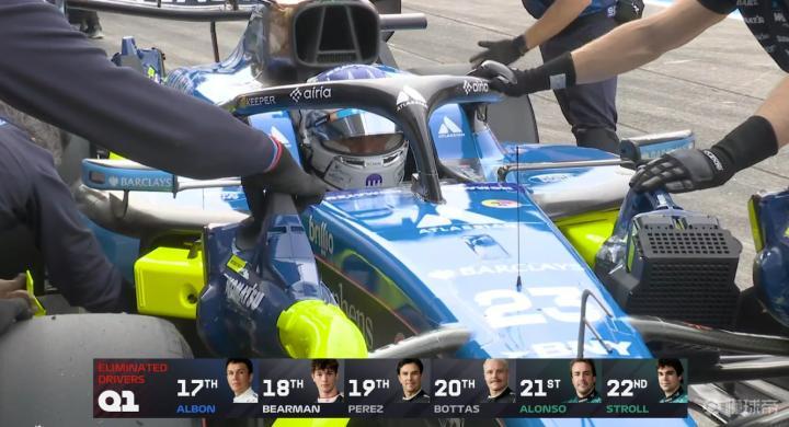 科拉平托最后时刻压线晋级,Q1淘汰车手:阿尔本、贝尔曼、佩雷兹、博塔斯、阿隆索、斯托尔。