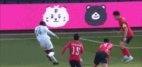04-04 23:48严智星进球后致敬了孙兴慜的庆祝动作。