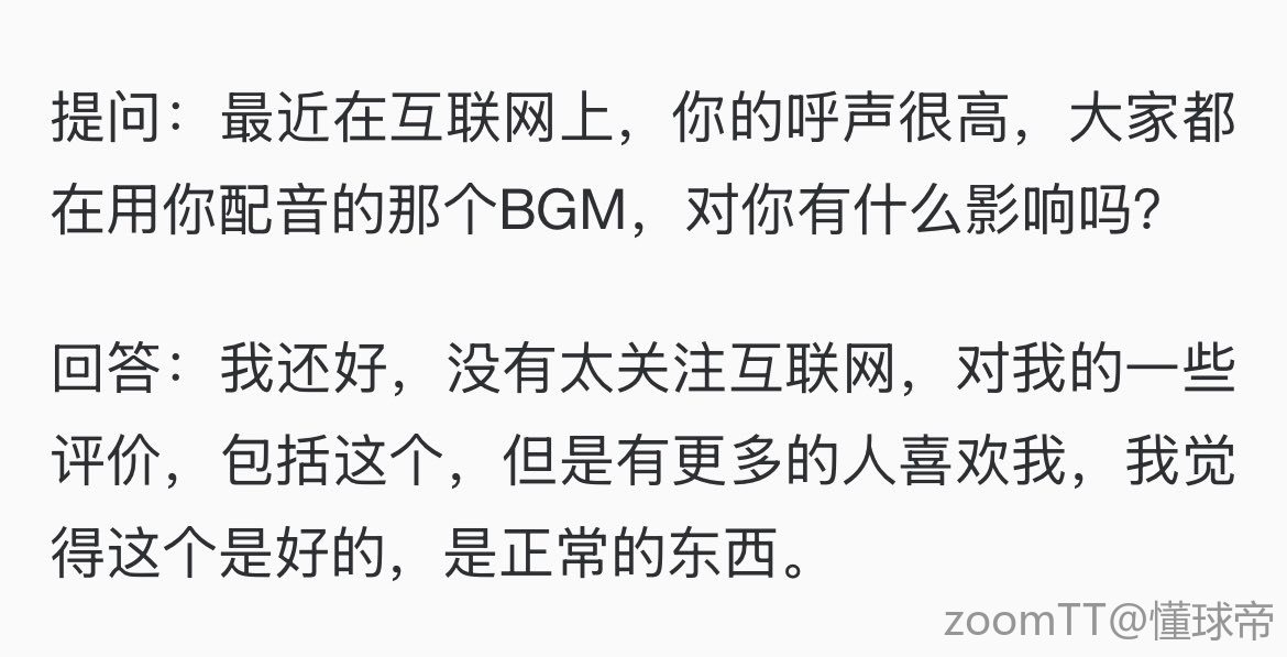 提问:最近在互联网上,你的呼声很高,大家都在用你配音的那个BGM,对你有什么影响吗?