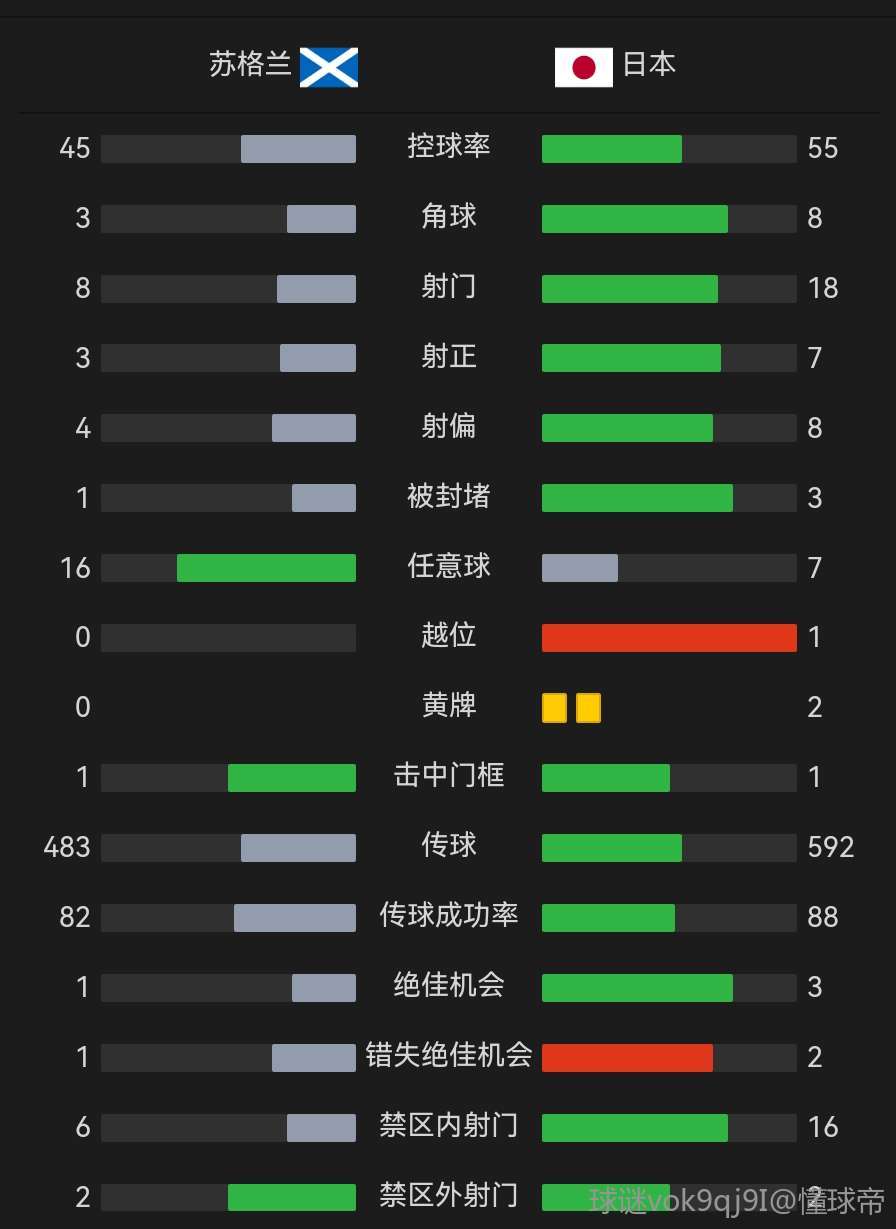 全场都没有完全形态主力的日本按着苏格兰踢 本身热情疯狂的主场🏴球迷完全坐牢一整场……