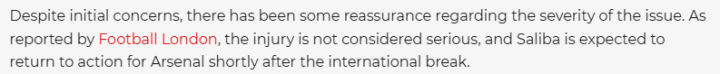 扫描下载懂球帝首页>动态> 懂球号> 伦敦足球:萨利巴国家队比赛日之后不久就能复出