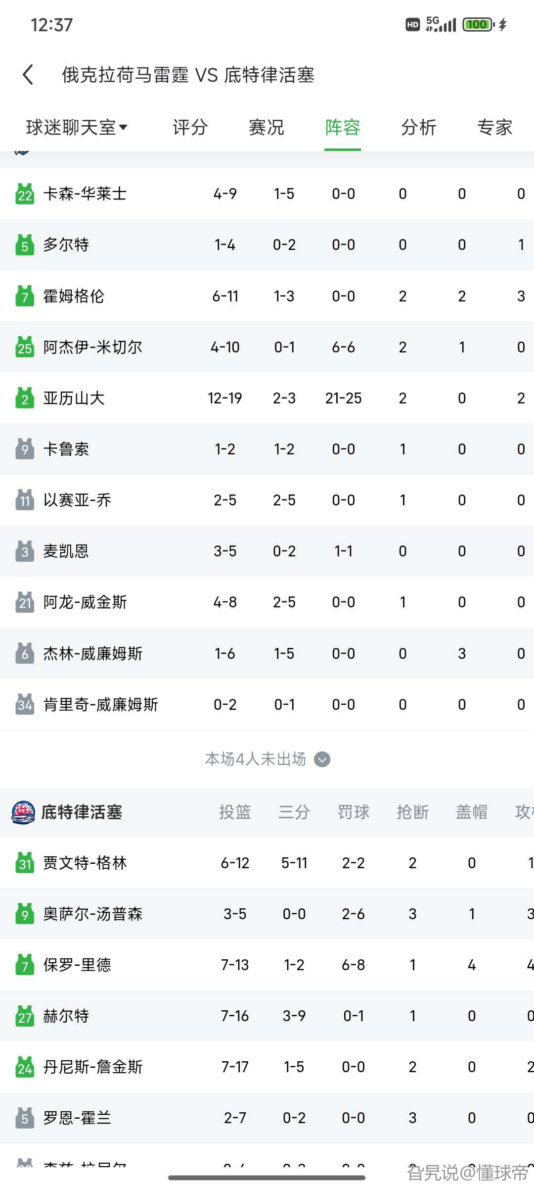 底特律活塞保罗-里德21分10板2助1断4帽,贾文特-格林19分5板1助2断,赫尔特17分6板6助1断。