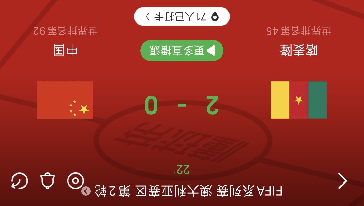 扫描下载懂球帝首页>动态> 闹乌龙,国足vs喀麦隆转播方把喀麦隆国旗搞倒了