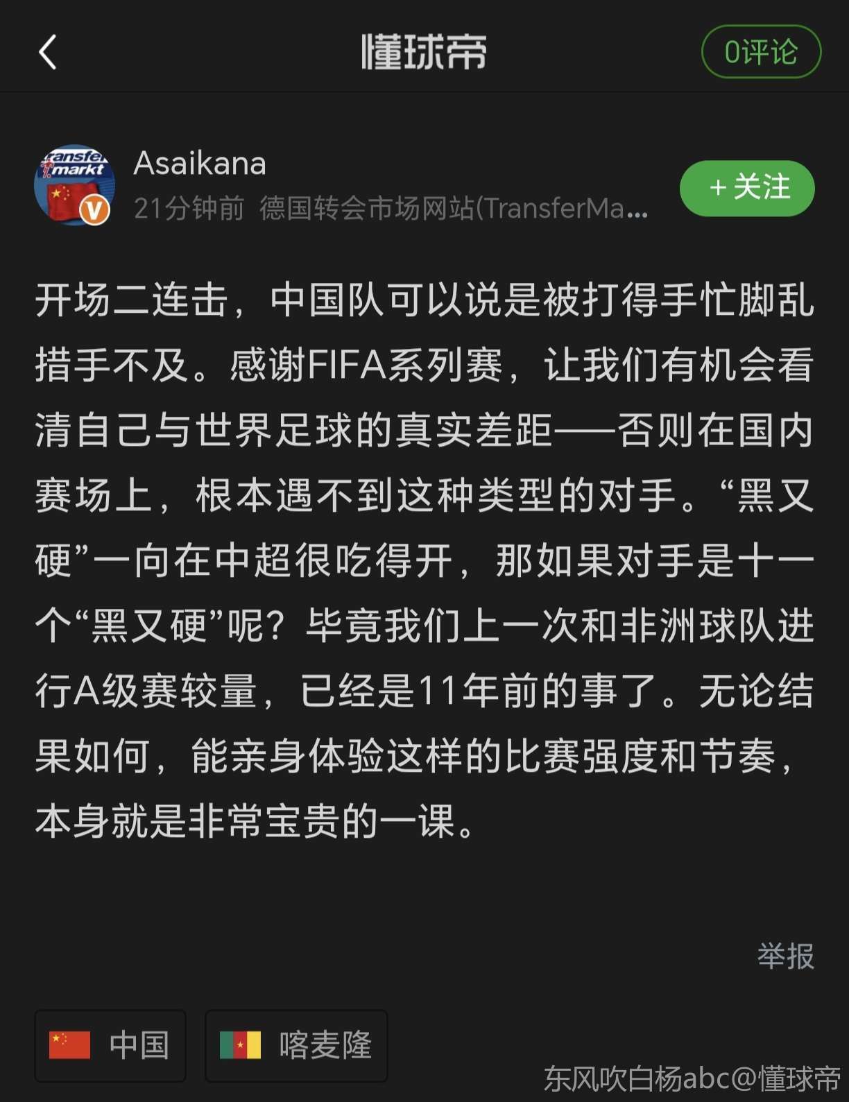 本来就是来找差距的,不会真有人觉得能赢喀麦隆吧