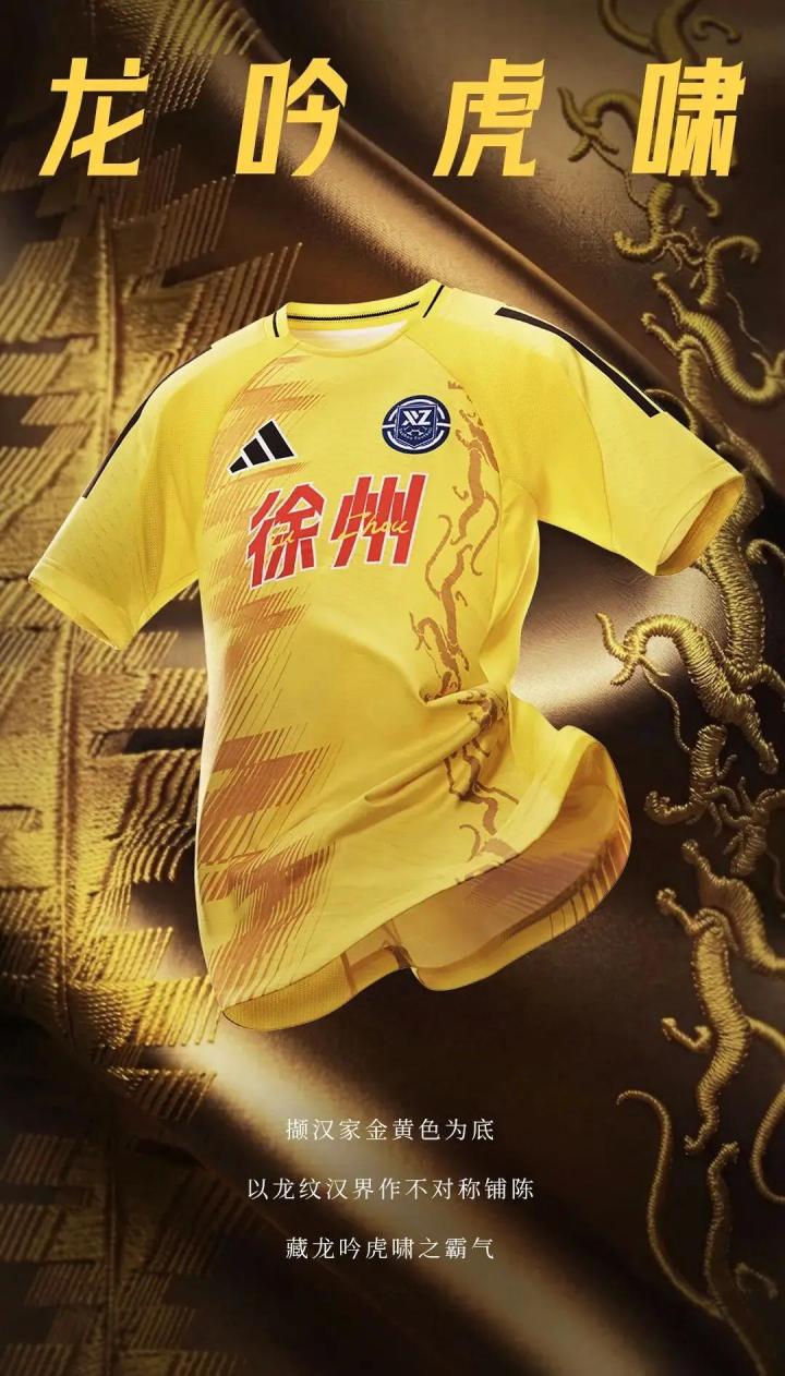 我真纳了闷了,徐州队一个纯蓝白配色的队徽怎么能整出来一身红和一身黄的,按理说一支球队的主色调是跟着队徽走,去年这样就算了今年更离谱,主场设计的没一点本土特色,客场黄袍加身有龙纹但是这个黄质感太差了,上身一坨啊