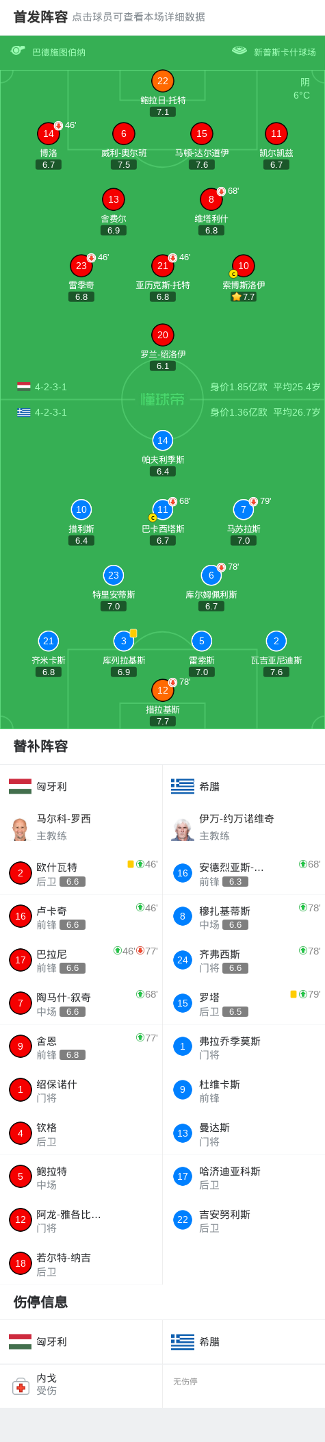 半场战报:匈牙利0-0希腊