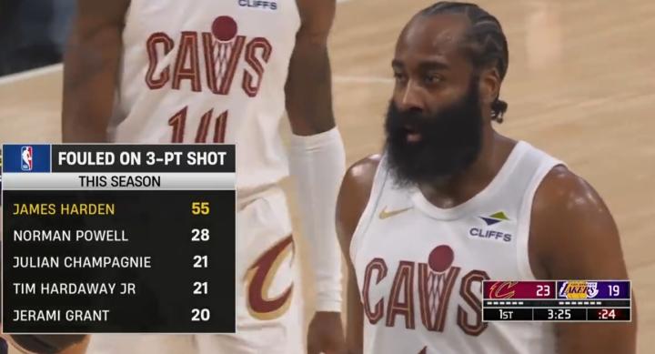 扫描下载懂球帝首页>动态> 本赛季造三分犯规榜:哈登55次断层领先,鲍威尔28次位居次席