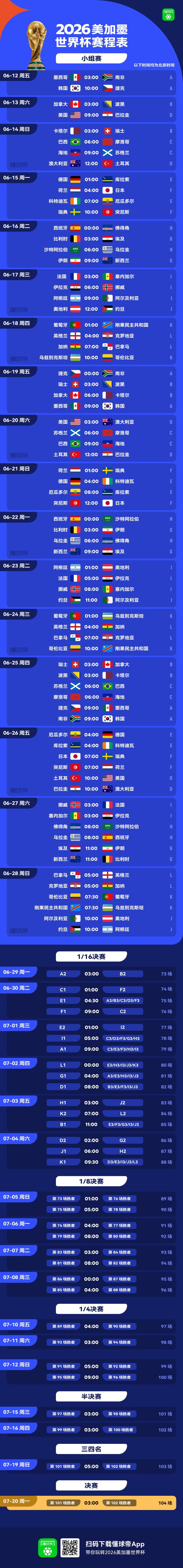 扫描下载懂球帝首页>动态> 懂球号> 保存转发!2026美加墨世界杯赛程表一览