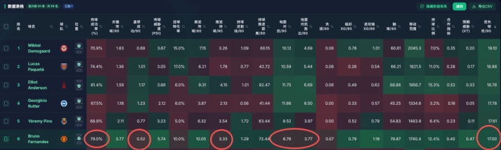 从数据上看,B费的狗叼飞盘风险系数高,传球成功率低,自身的盘带过人低,持球推进低,地面对抗和成功也都低,丢失球权高,刚好都满足我刚刚提到的这些。