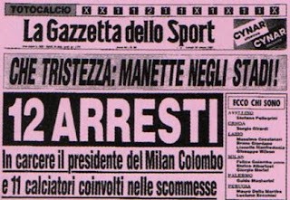 虽然如此,行业内的处罚是逃不掉的。AC米兰被罚降级到了乙级联赛,主席科隆博被解除职务。拉齐奥同样被罚降级意乙。阿韦利诺、博洛尼亚、佩鲁贾、巴勒莫和塔兰托等俱乐部都被扣除了5个联赛积分。一共20名球员被处以了不同程度的禁赛处罚。