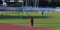第33分钟,李家进远距离吊门,球被马修斯精彩扑出