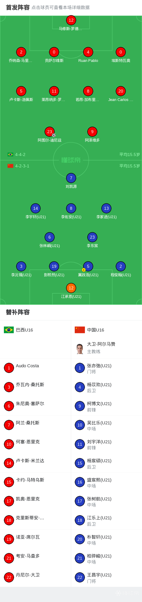 第29分钟,阿图尔-迪尼兹强势突入禁区破门,U16国少0-1巴西U16
