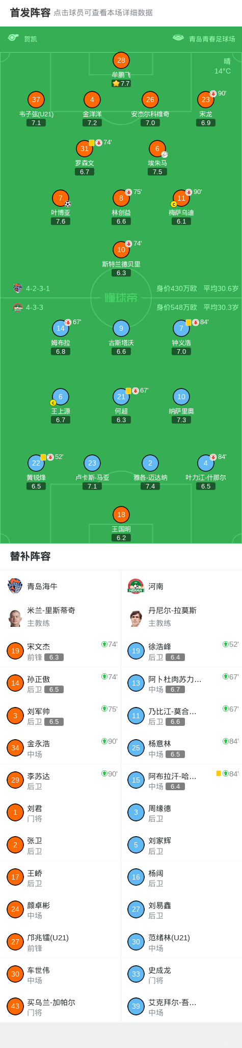 北京时间4月4日15:30,中超第4轮继续进行,青岛海牛坐镇青岛青春足球场迎战河南,本场主裁判为贺凯,VAR裁判为李海新。比赛中,埃朱马精准直塞助攻叶博亚一击制胜,卢卡斯-马亚头槌击中立柱。最终,海牛主场1-0击败河南,取得赛季首胜的同时送对方赛季首败。